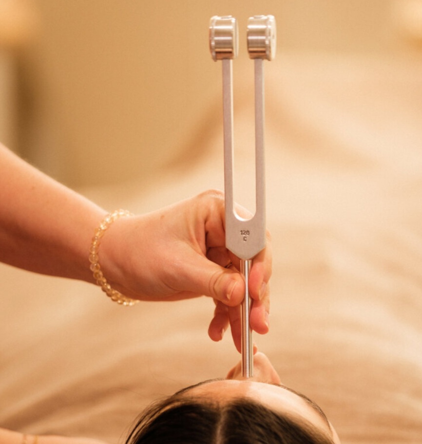 Ce soin se déroule en 5 phases complémentaires , conçues pour agir à la fois sur la structure tissulaire du visage et sur les correspondances organiques internes avec l'acupression , diapason , bâton de verre , et les bols Kansu